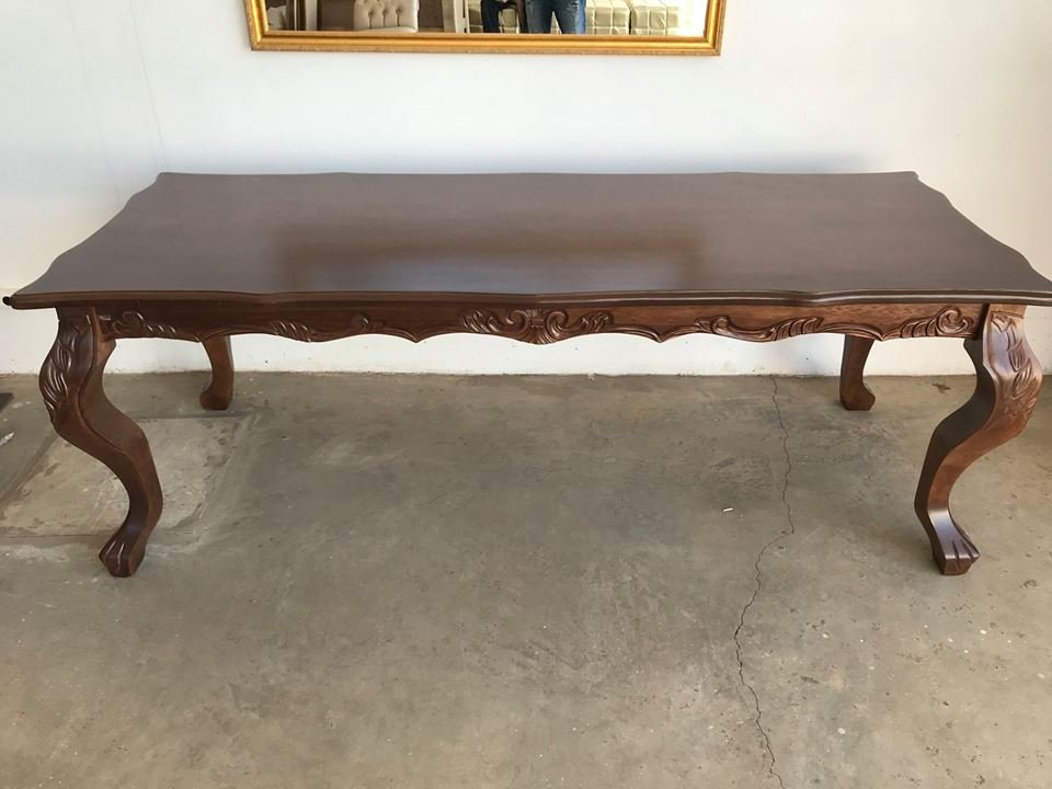Mesa entalhada na cor imbuia medindo 2,30m x 0,9m