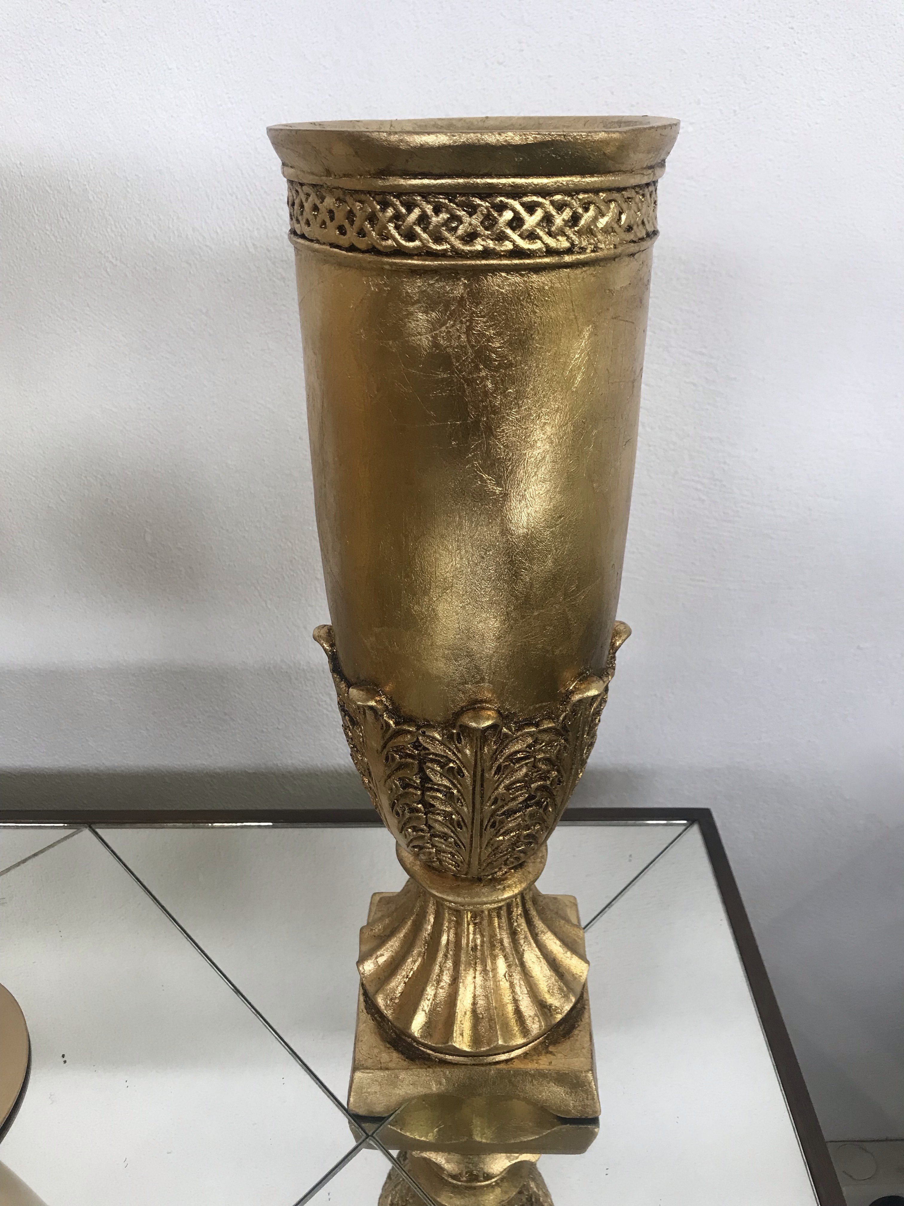 Vaso resina murano dourado medindo 38cm de altura